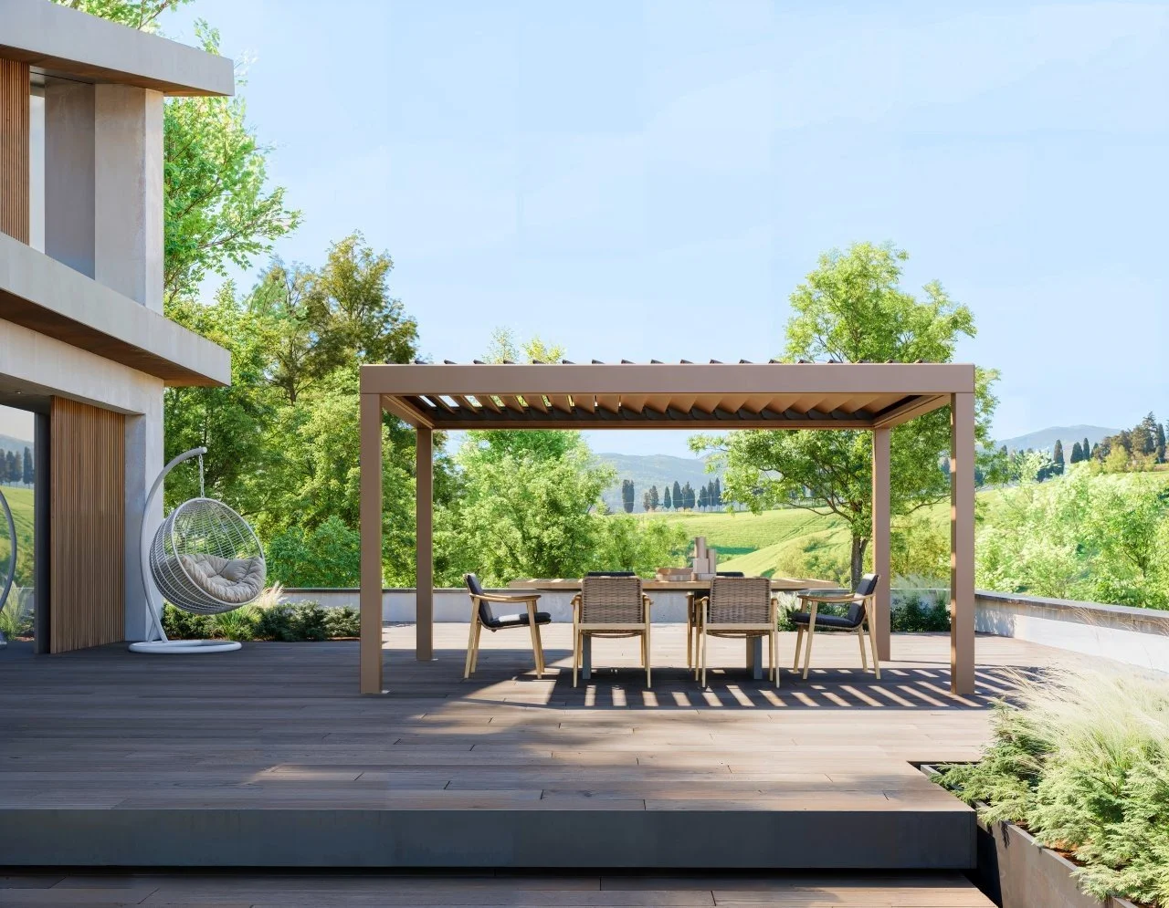 Des pergolas innovantes qui allient fonctionnalité et design d'inspiration italienne pour un cadre de vie extérieur raffiné.